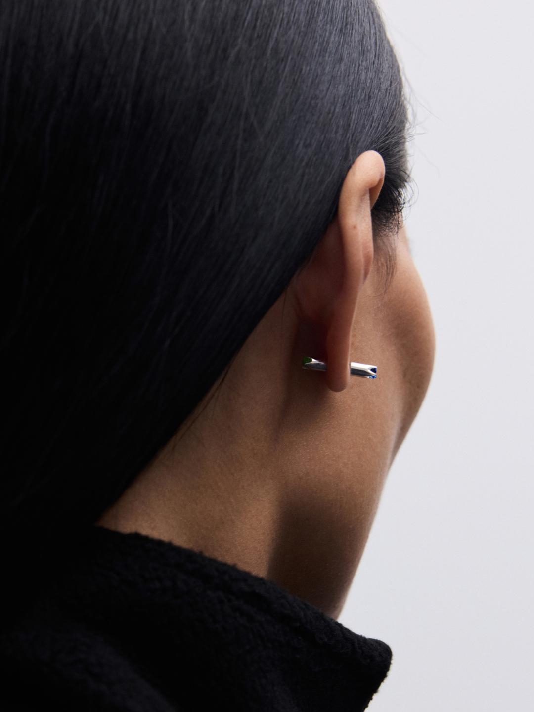Эти серьги пополнили семейство пуссет-перевертышей в Августе. Синий сапфир и зеленый цаворит закреплены на разных сторонах, так чтобы украшение можно было переворачивать, а форма крошечных лапок-крапанов отсылает к фирменным лепесткам J.Kim.