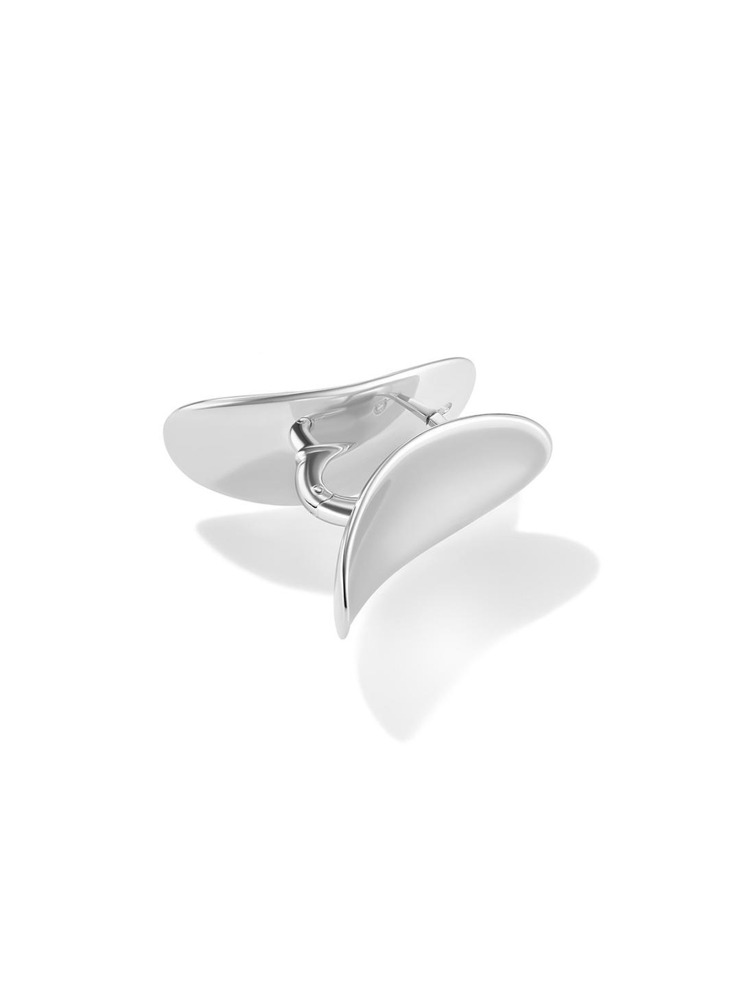 Самая заметная серьга в коллекции в виде двух отзеркаленных эллипсов. Эллипсы так сконструированы, что собирают и отражают падающий луч. Если случайно поймать этот луч, то на теле будет виден рефлекс света.