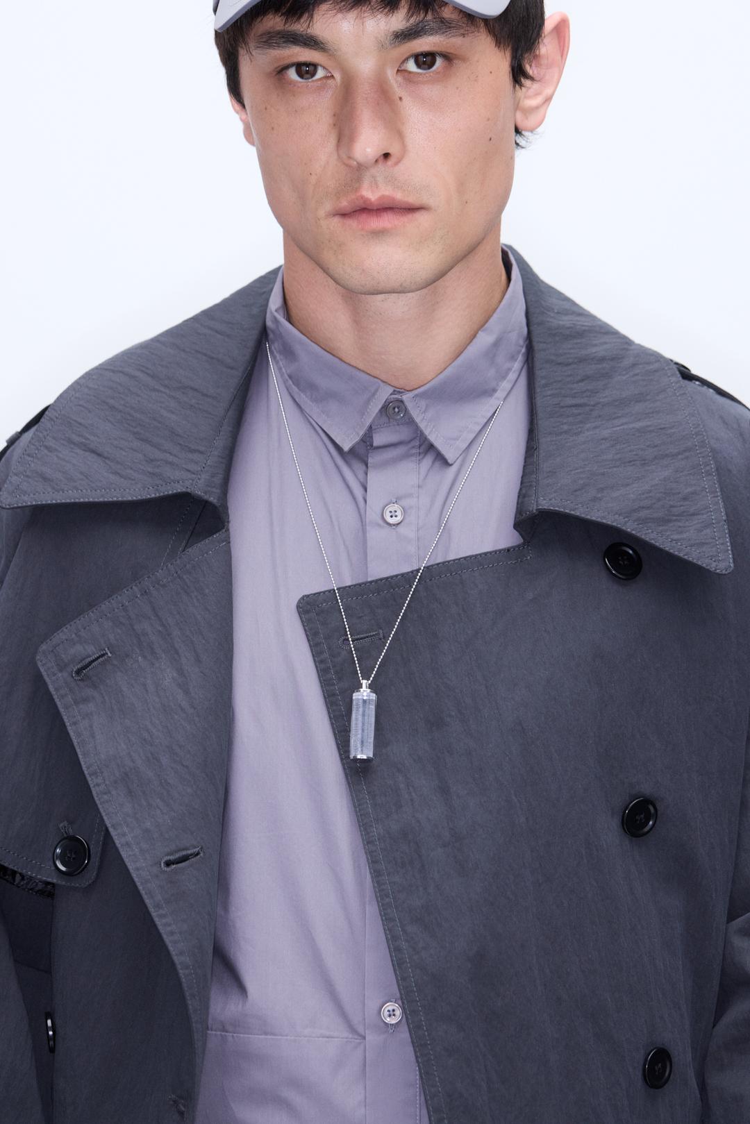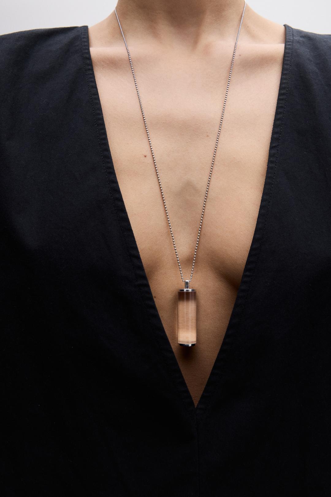 Форма подвески — отсылка к ретро-выключателям. Такой мог бы быть подвешен к антикварному торшеру на цепочке из металлических шариков. Огранка каждого камня выполнена вручную.