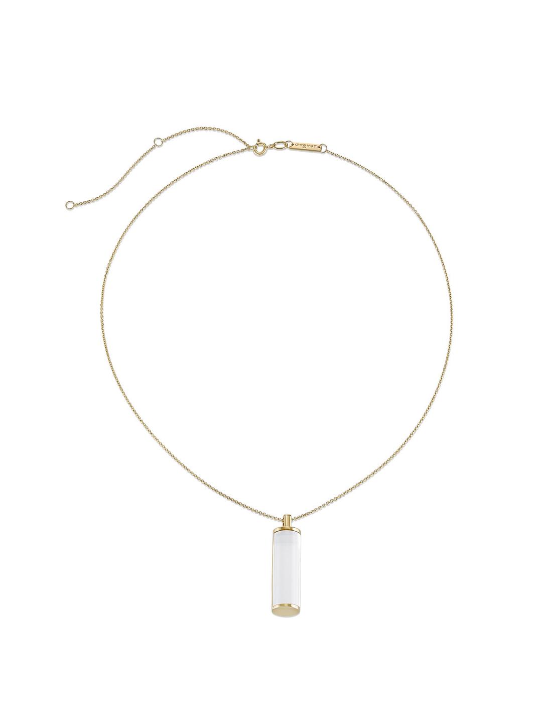 Форма подвески — отсылка к выключателям старых торшеров, подвешенным на цепочке из шариков. Огранка каждого камня выполнена вручную.
