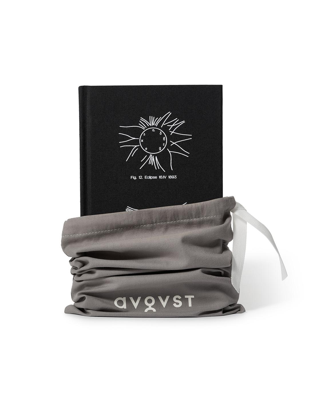 На обложку шелкографией нанесены схемы солнечного затмения, главного мотива коллекции Eclipse. Затмение — краткий миг, препятствие на пути светового луча, время суеверий. Но в конце концов солнце всегда возвращается.