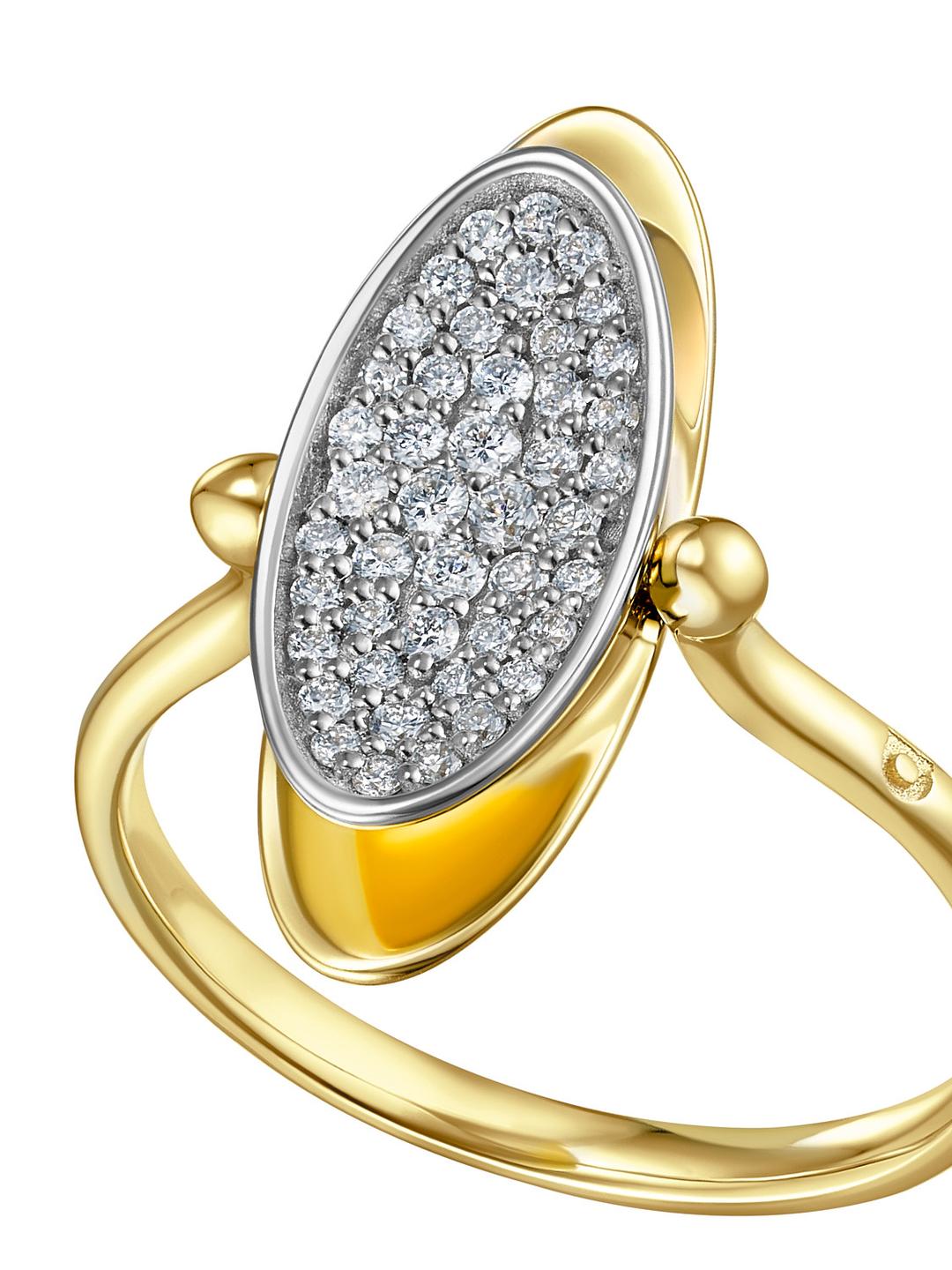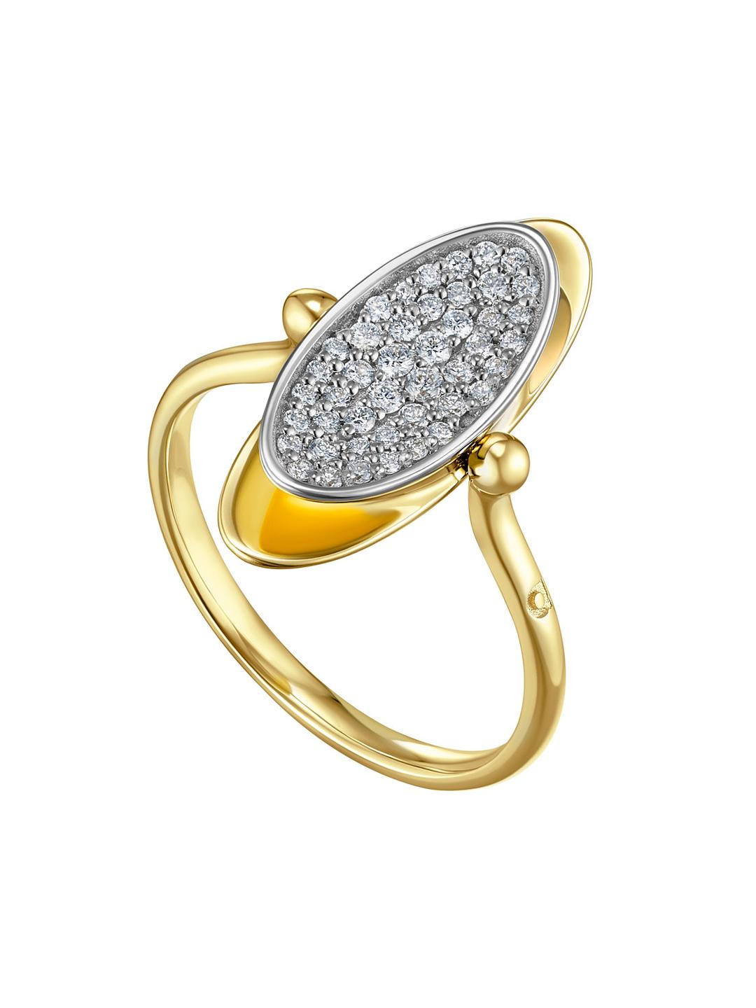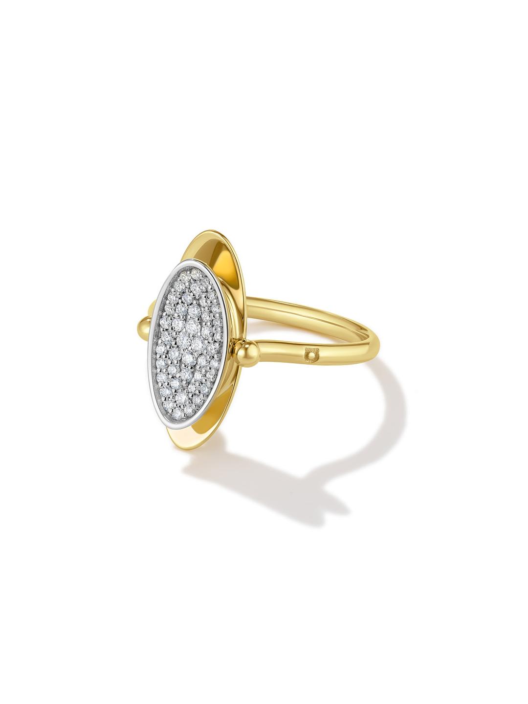 Кольцо-перевертыш с двухцветным паве из лимонного золота
