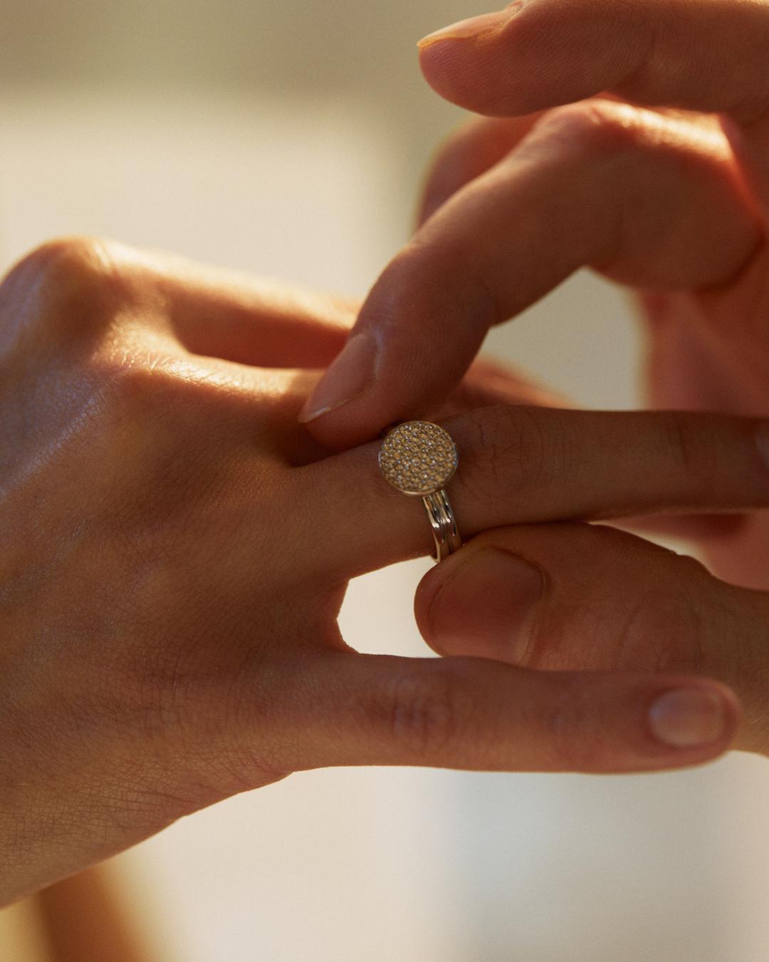 Кольцо из двух витков с аккуратным бриллиантовым кругом.