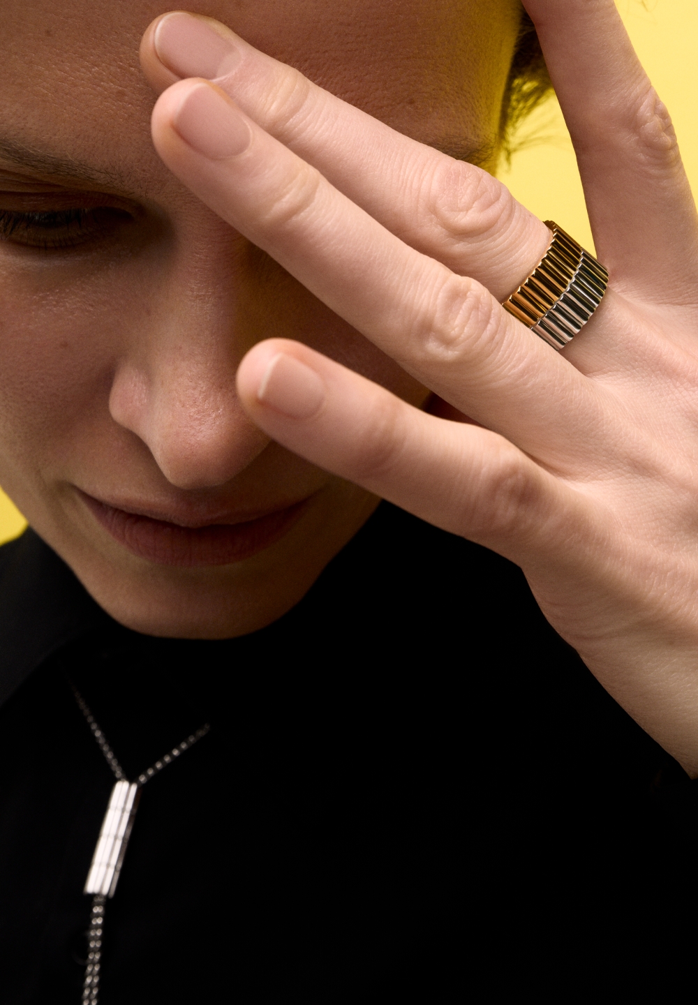 Кольцо-стеклярус одинарное из лимонного золота