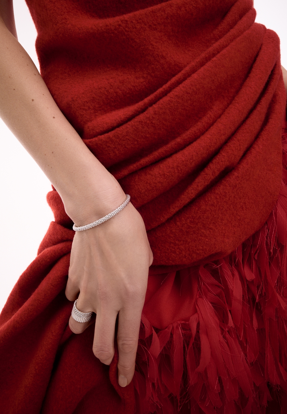 Кольцо-стеклярус одинарное из белого золота